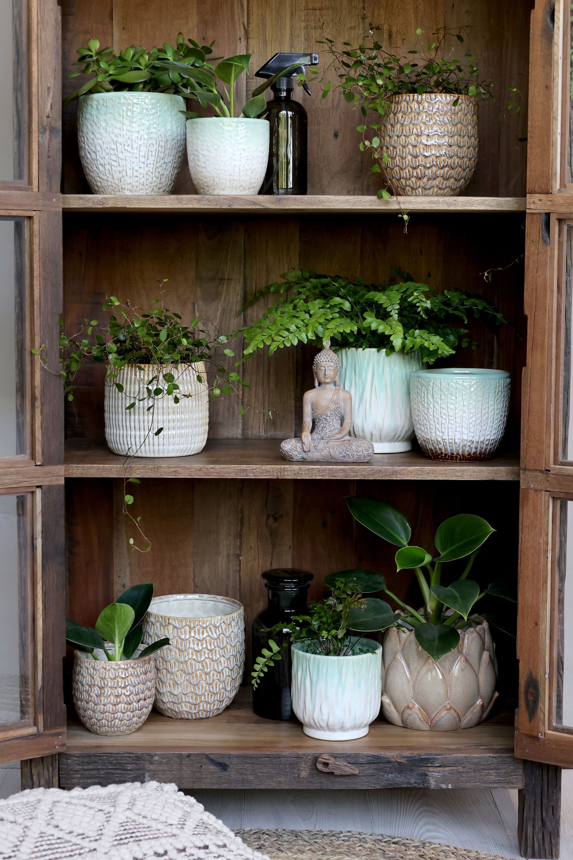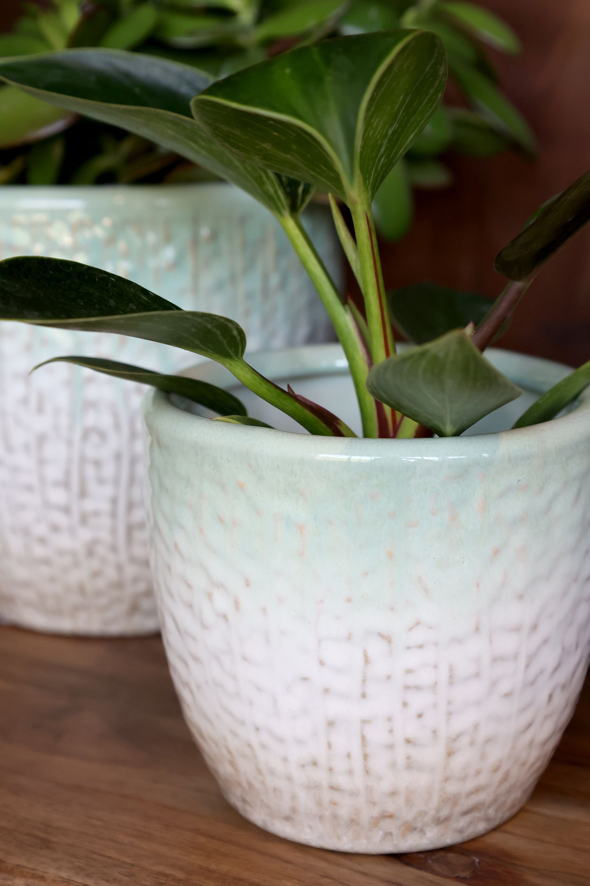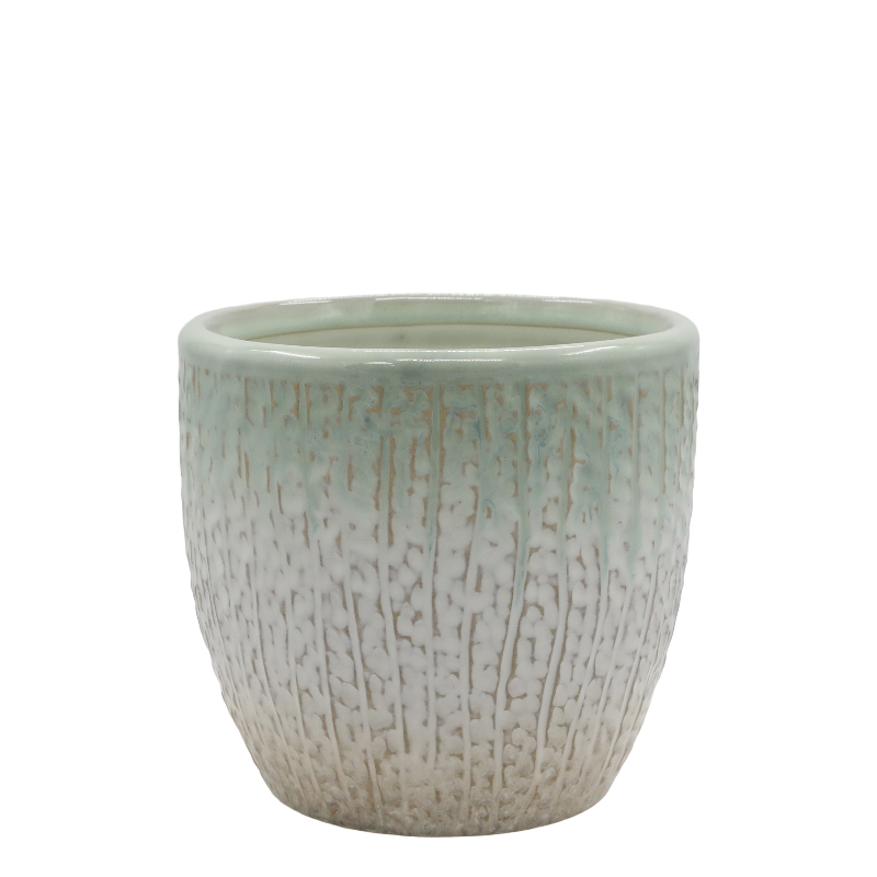 Kaunis keraaminen kukkaruukku hurmaa vihertävällä liukuvärillä ja ajattomalla kuviolla. Ruukku sopii erinomaisesti viherkasveille ja kukille sekä toimii näyttävänä sisustuselementtinä sellaisenaan.