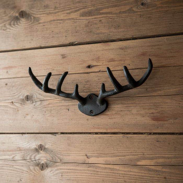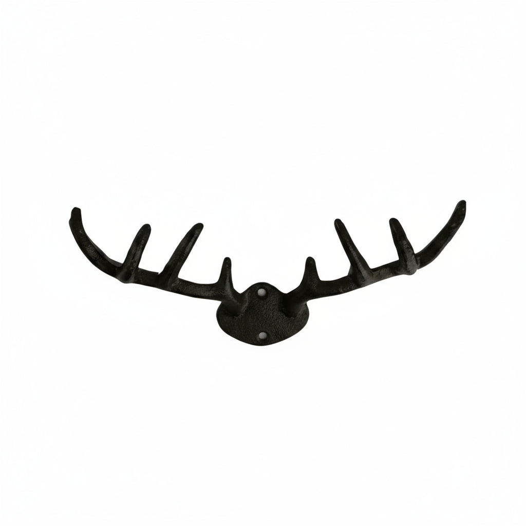 Valurautainen naulakko jonka sarvet toimivat koukkuina.