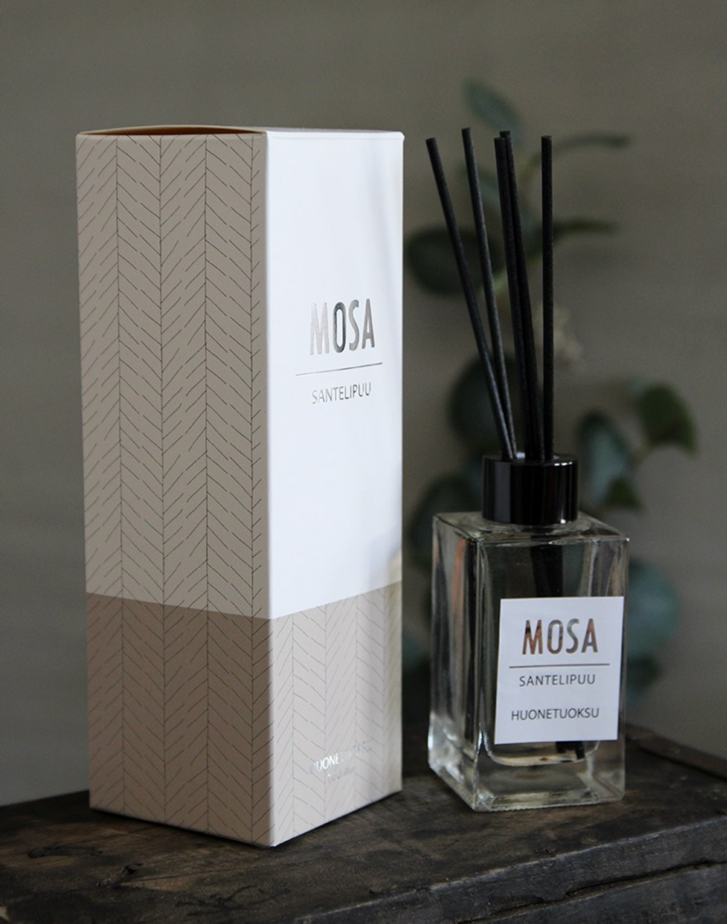 Create a lovely atmosphere in your home with Mosa's room fragrance. A room fragrance packaged in a beautiful glass bottle with the classic scent of Sandalwood. Place the bottle in the hallway, bathroom or living room, where the lovely scent welcomes you and creates coziness. Also great as a gift!
