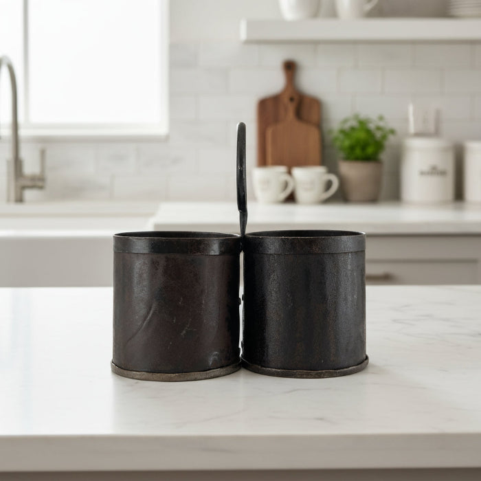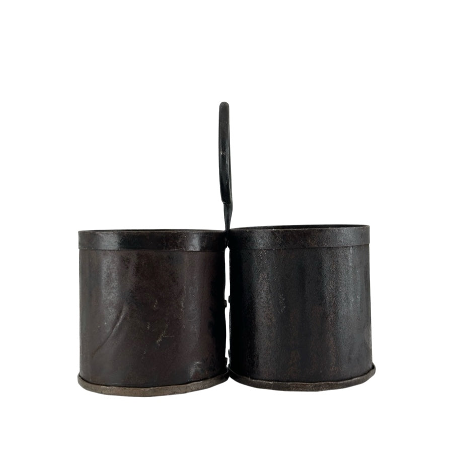 Metallinen aterinteline. Teline on valmistettu kierrätetystä metallista ja jokainen esine on uniikki.