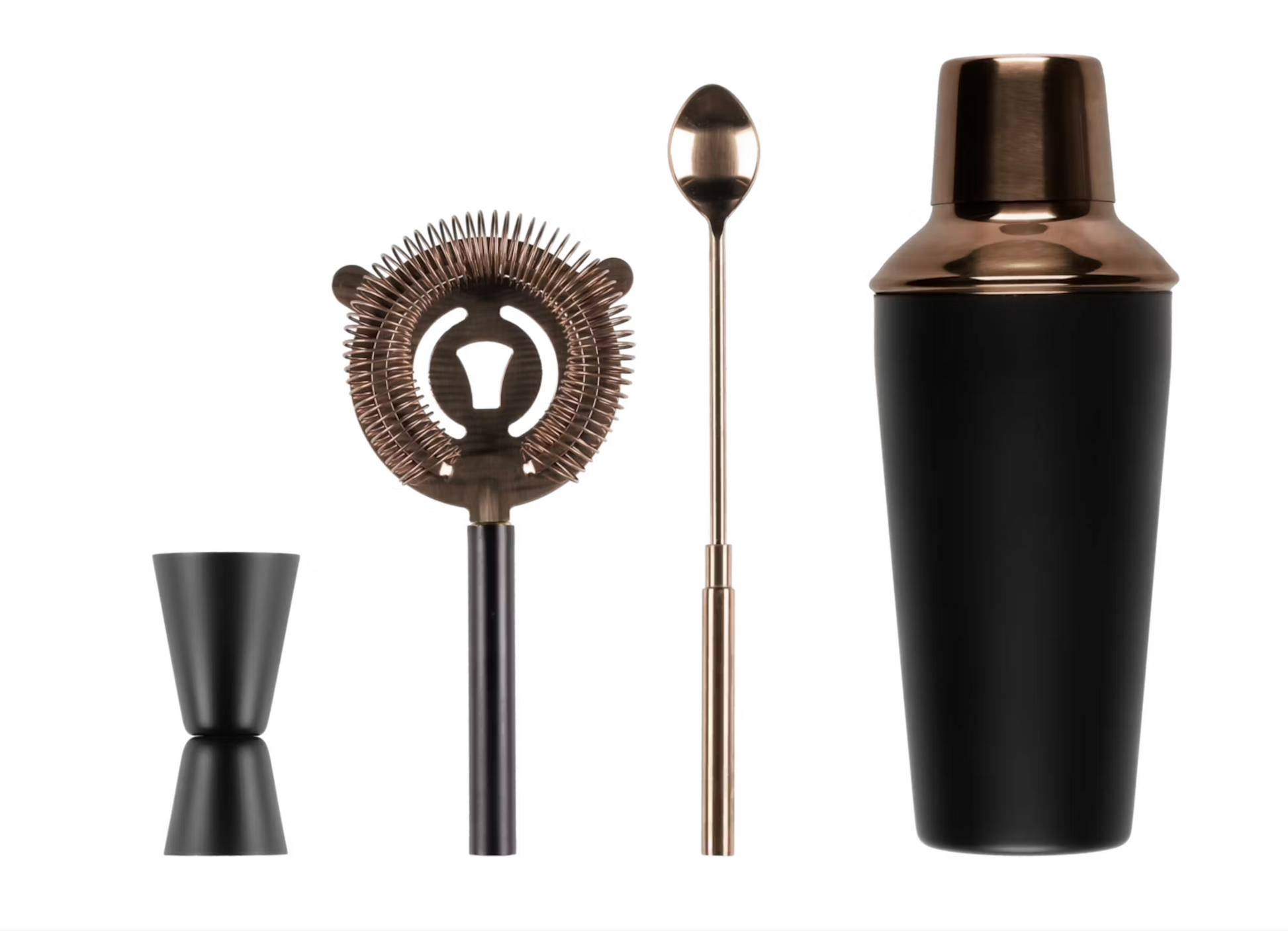 Tyylikkäät cocktail-välineet antavat juhlille täydellisen loppusilauksen. Setti sisältää baarimestarin perusvälineet: Shaker 750 ml. Baarilusikka 23 cm. Cocktailsiivilä. Alkoholimitta 25 ml/ 50 ml. Käsinpesu.
