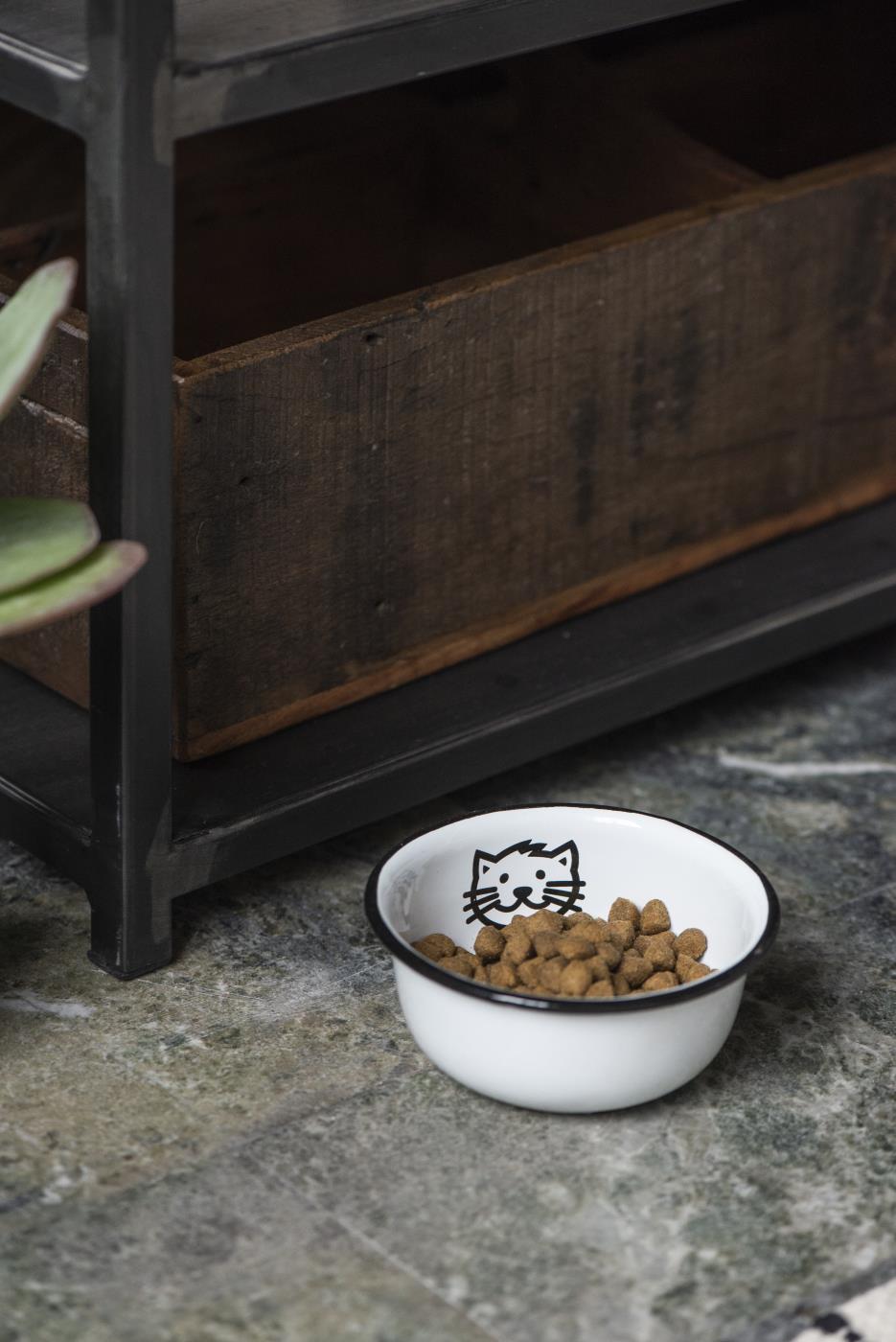 Suloinen ja käytännöllinen emaloitu ruokakuppi kissalle.