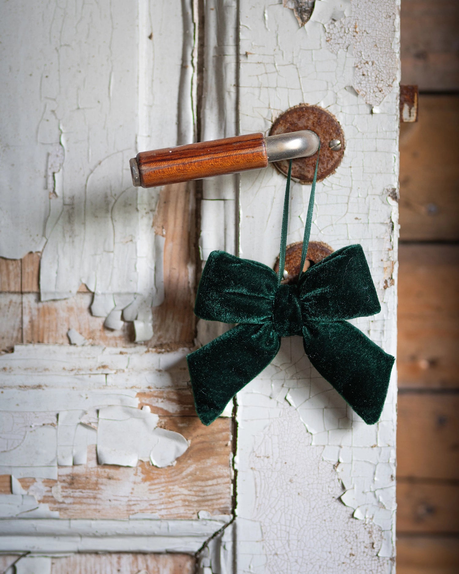 Tämä upea, ylellisestä sametista valmistettu rusetti tuo pehmeää eleganssia kotiin ja juhlakoristeluun. Syvän vihreä sävy ja muhkea muoto tekevät siitä näyttävän yksityiskohdan esimerkiksi joulukuuseen, ovikoristeeksi tai lahjapakettien viimeistelyyn.