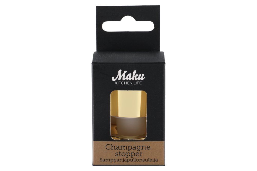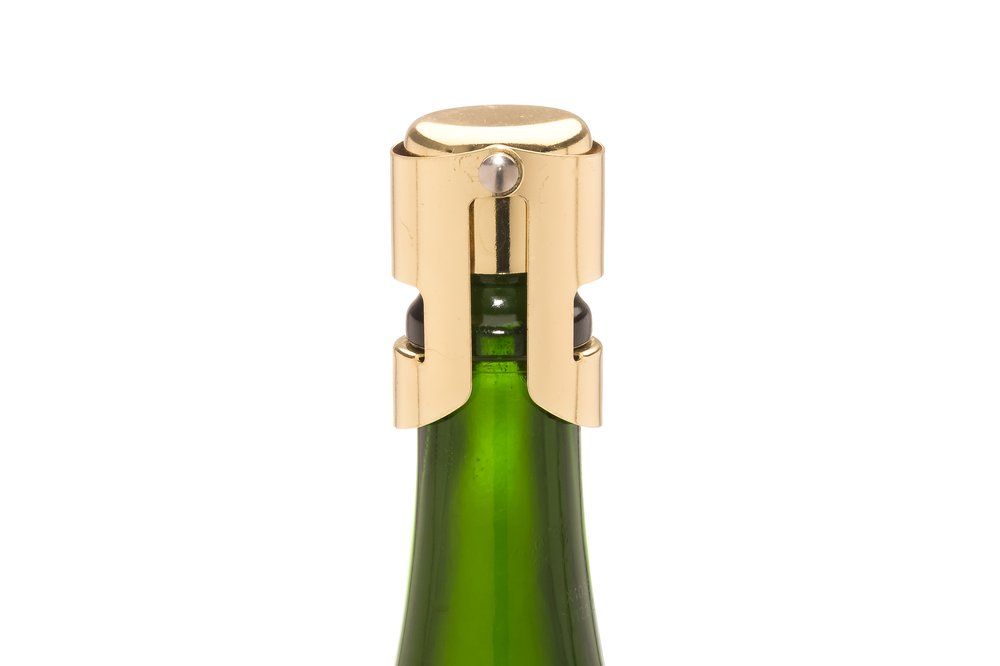 Ruostumattomasta teräksestä valmistettu samppanjapullon sulkija. Sulje avattu pullo ilmatiiviisti, juoma säilyy pidempään. Käyttö: Avaa korkin siivekkeet, aseta korkki avatun samppanjapullon päälle ja sulje siivekkeet napsauttamalla ne takaisin alas. Käsinpesu.