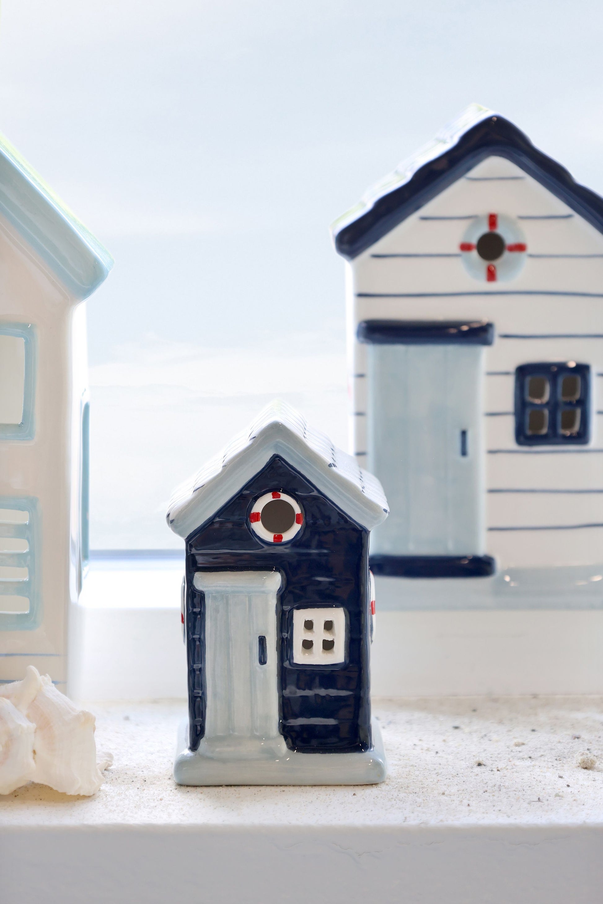 Kesäinen beach house koriste on kiva yksinään tai muodosta kokonaisuus erilaisista taloista.