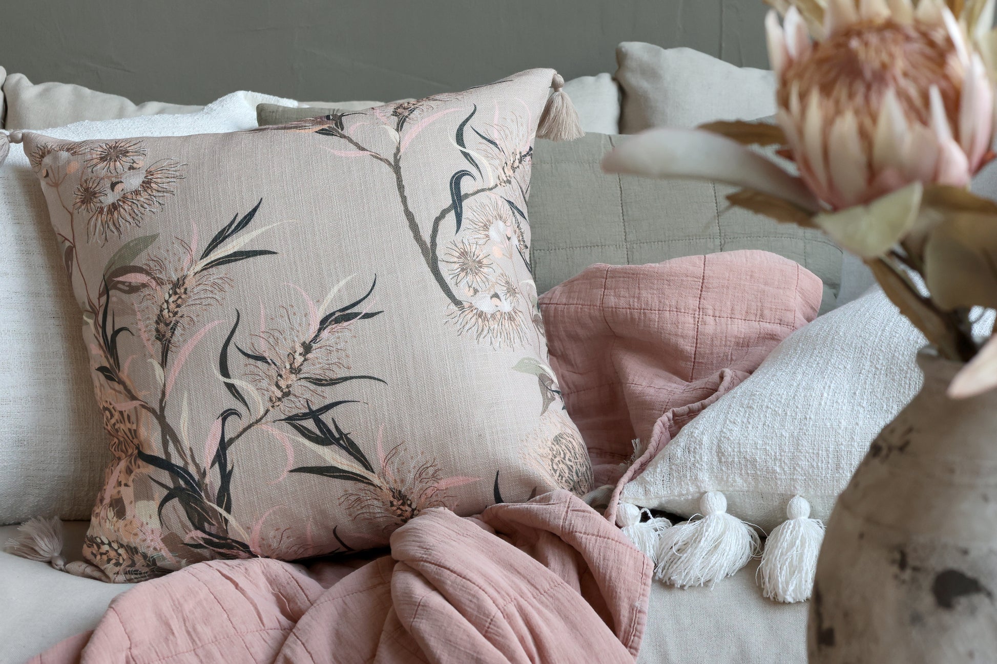 Tikattu torkkupeitto Vintage luo viihtyisää tunnelmaa kotiisi. Peitossa on kaunis roosa väri ja vintage pesu tekee siitä miellyttävän pehmeän Tähän peittoon on mukava kääriytyä viileänä iltana ja nauttia sen lämmöstä.